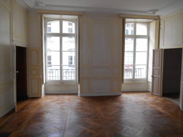 Dans immeuble du 19ème, appartement ancien de caractère, Type 6 occupant le cours entier du premier étage, d'une superficie habitable de 168 m², comprenant : Entrée, séjour 29 m² et salon 24 m² sur parquet avec cheminées, dégagemant avec bibliothèque, cuisine sur cour, salle d'eau, trois grandes chambres (19.20 ,16.90 et 17 m²) dont une avec salle de bains privative et petite chambre attenante (8.10). Cave au sous-sol.