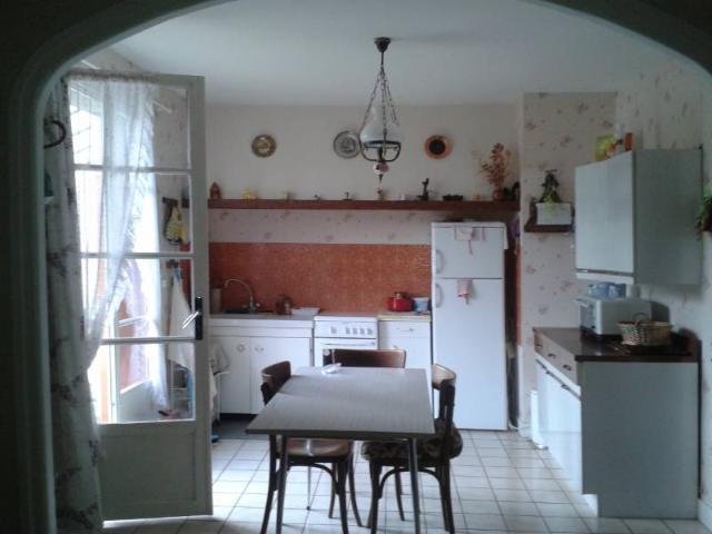 - En rez-de-chaussée surélevé: pièce à vivre avec cuisine (env. 28 m²), 2 chambres (env. 11 et 12 m²), salle de bains avec wc (env. 5 m²). Grenier.